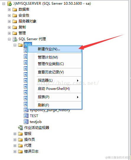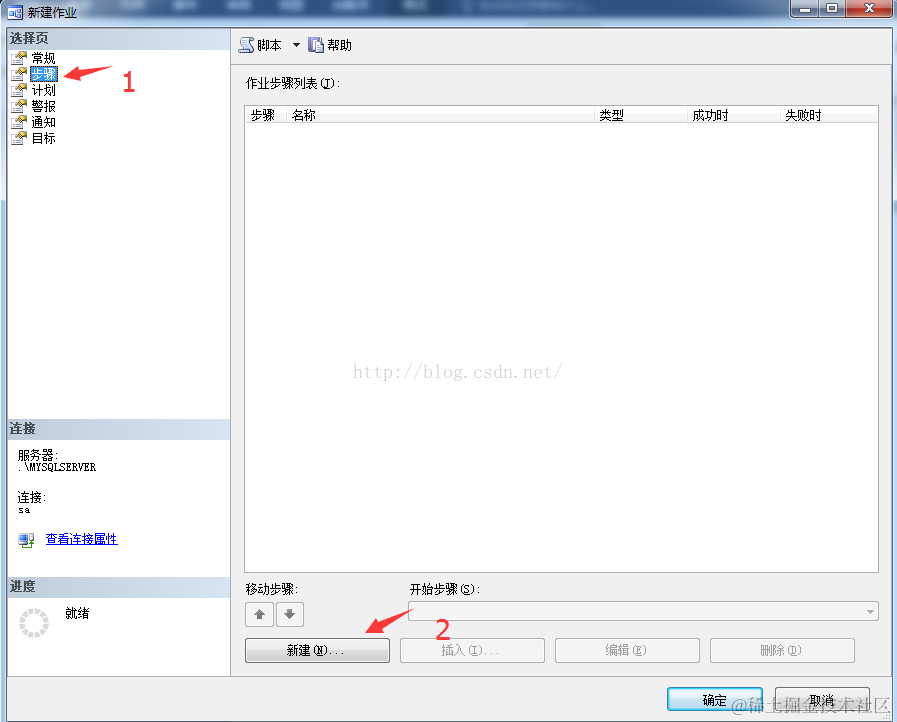 1. SQL Server 代理 → 作业(右键)→新建作业