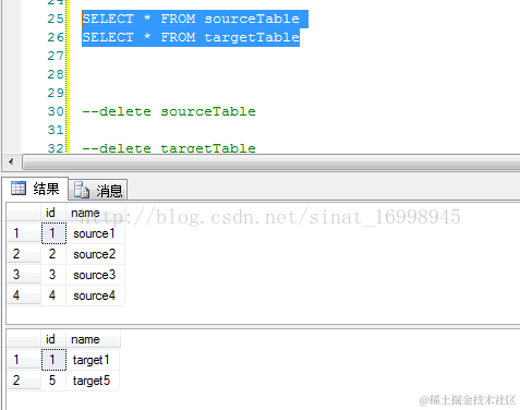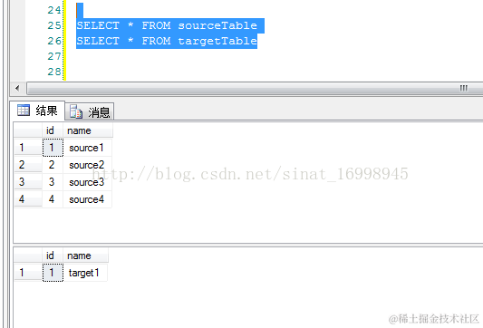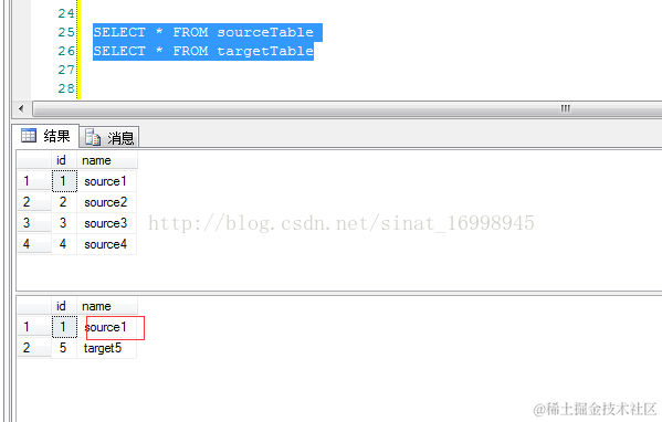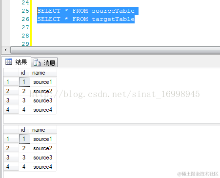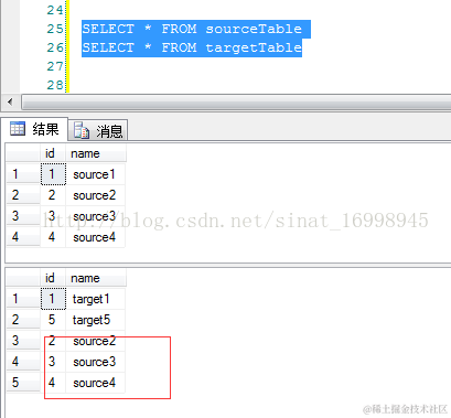 1.有两张数据表分别是sourceTable(源数据表),targetTable(目标数据表)