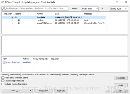 首先查询文件日志show log(可查看“4)查看日志信息”说明),可选择不同历史版本进行比较,如下图: