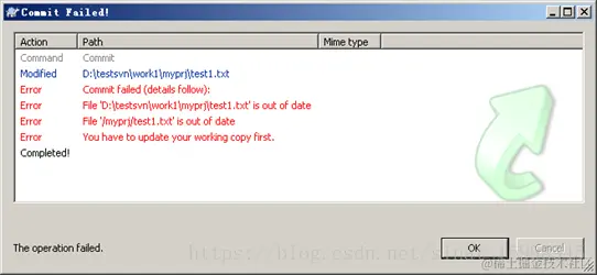 因为版本过时,提交失败后。A用户直接选择更新操作,结果如下图所见