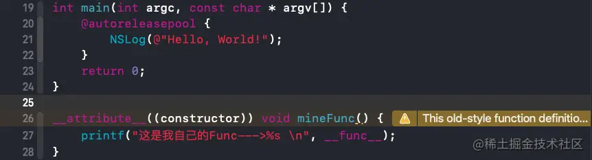 * frame #0: 0x0000000100003ca4 KCObjcBuild`mineFunc at main.m:27:5 [opt]