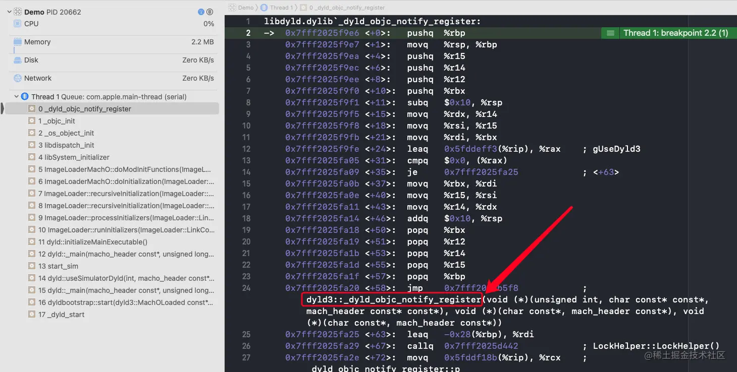 新建一个iOS工程,在工程中添加_dyld_objc_notify_register符号断点,然后运行项目: