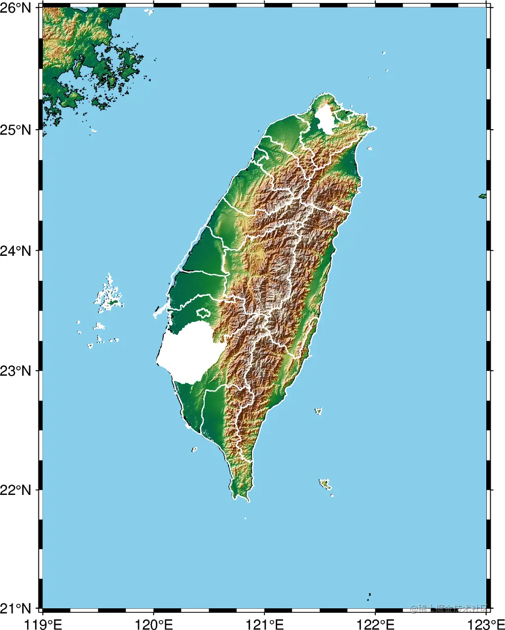 带县的台湾地形图 (图片由作者提供)
