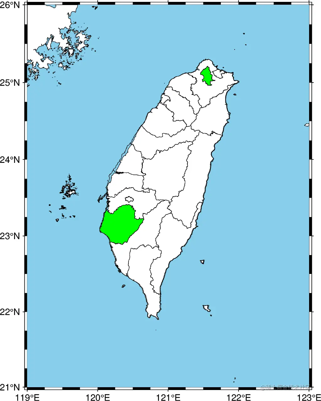 我们选择了要在地图上突出显示的两个县--台北市、台南市。