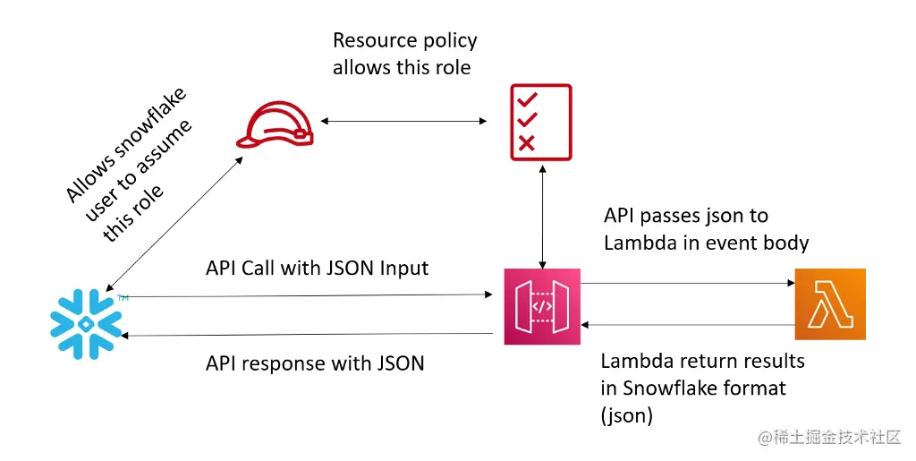 - API 网关将响应发回给 Snowflake