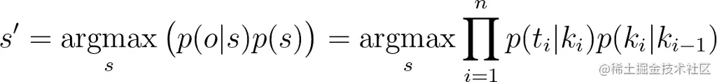 _p(s)是一个关于字母序列的先验 。为了说明问题,我们重新使用我们的大词模型。也就是说,一个由_n个 字母组成的序列(例如一个单词)的联合概率是其键对键转换(即大字)的乘积。