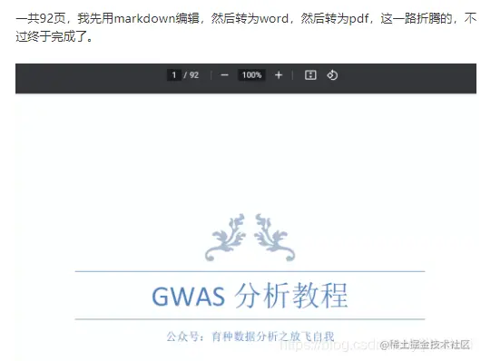 所以,我才将我之前写的GWAS学习笔记,编写成GWAS的pdf教程,这样对于新手,刚入门的,想入门的同学有一个更快的、更高效的学习资料。