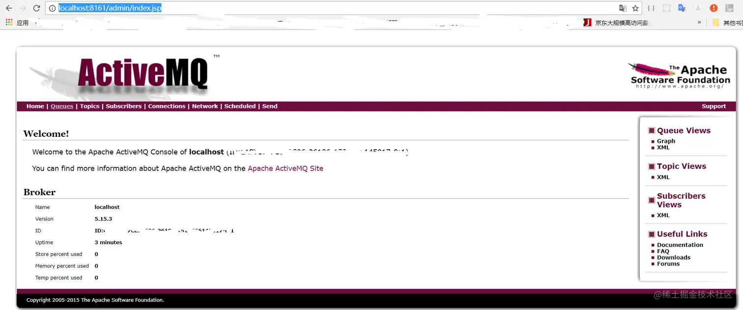 3.启动完毕,http://localhost:8161/admin/index.jsp 用户名:admin 密码 admin