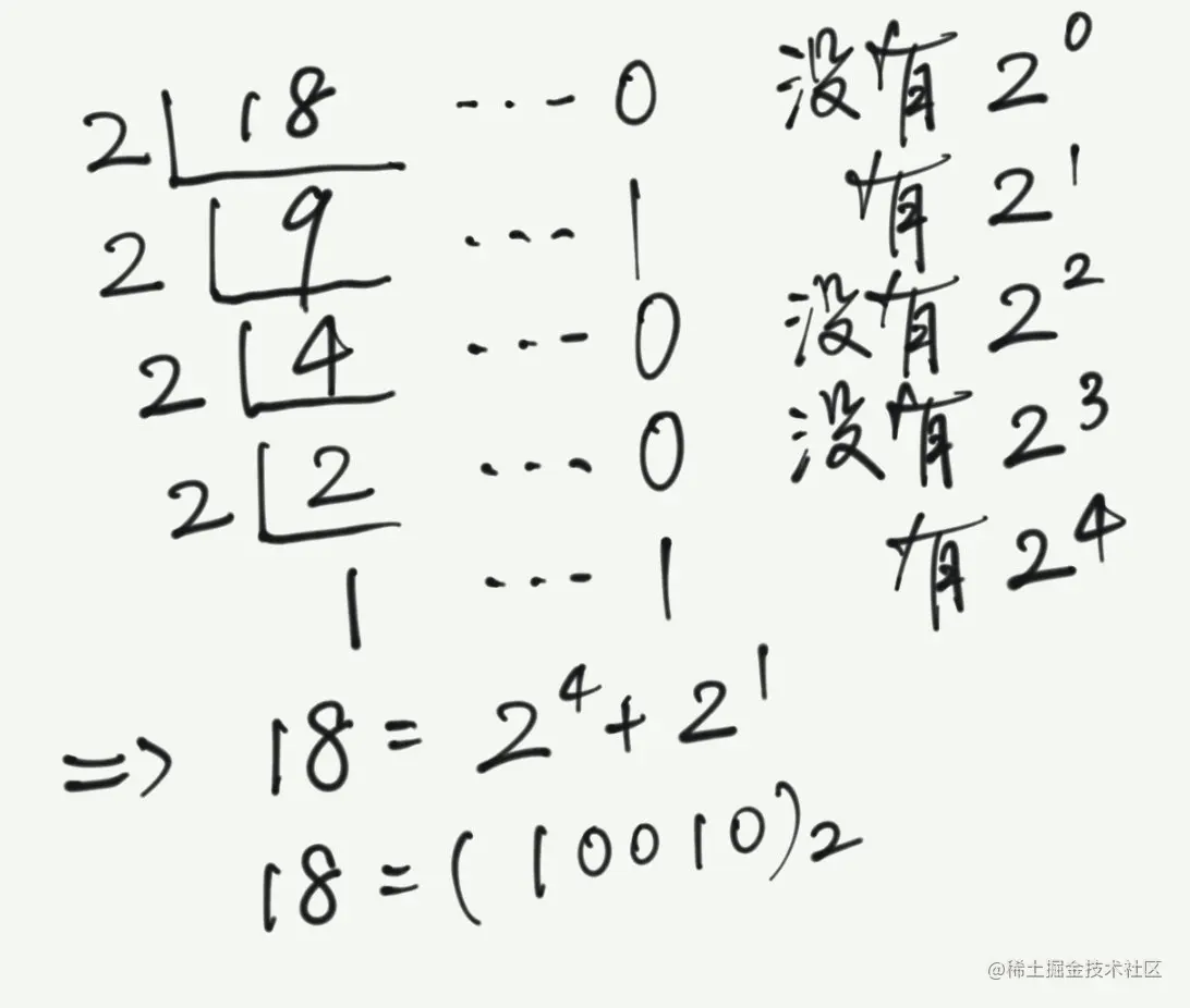 于是 , 的方幂前的系数是我们需要知道的,把十进制转换为二进制我们都很熟悉了,不断除以 2,看余数。