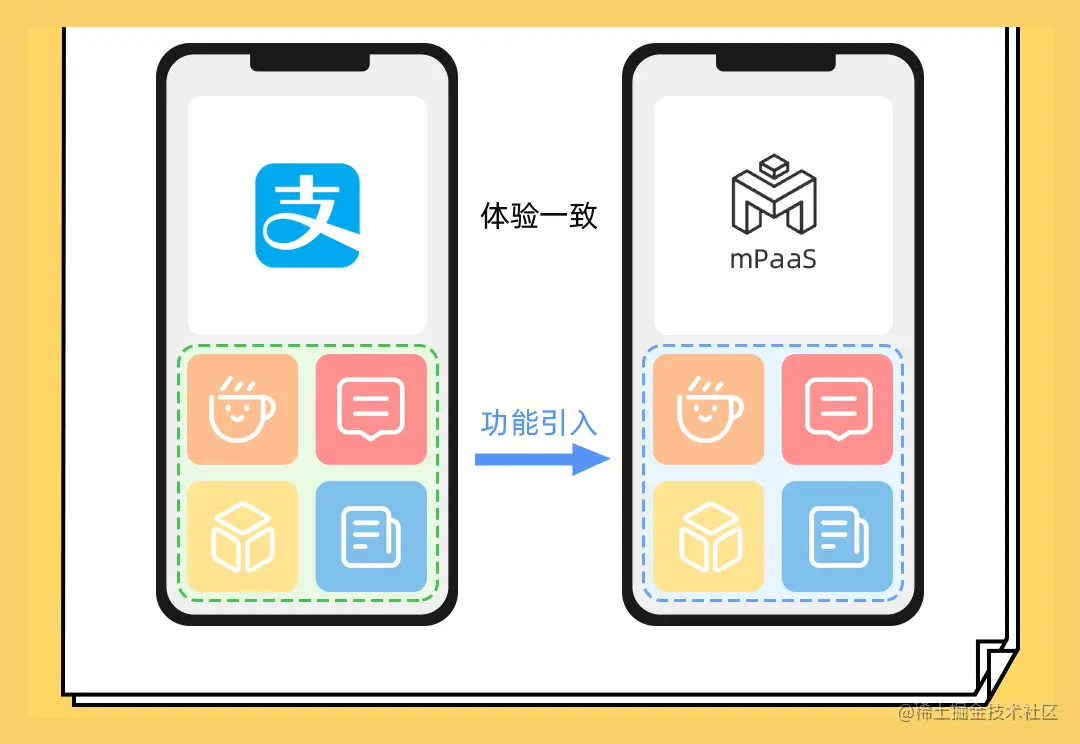 mPaaS 小程序框架能力源于支付宝,基于同一套技术标准,小程序方无需二次开发,即可上架 mPaaS 小程序市场。