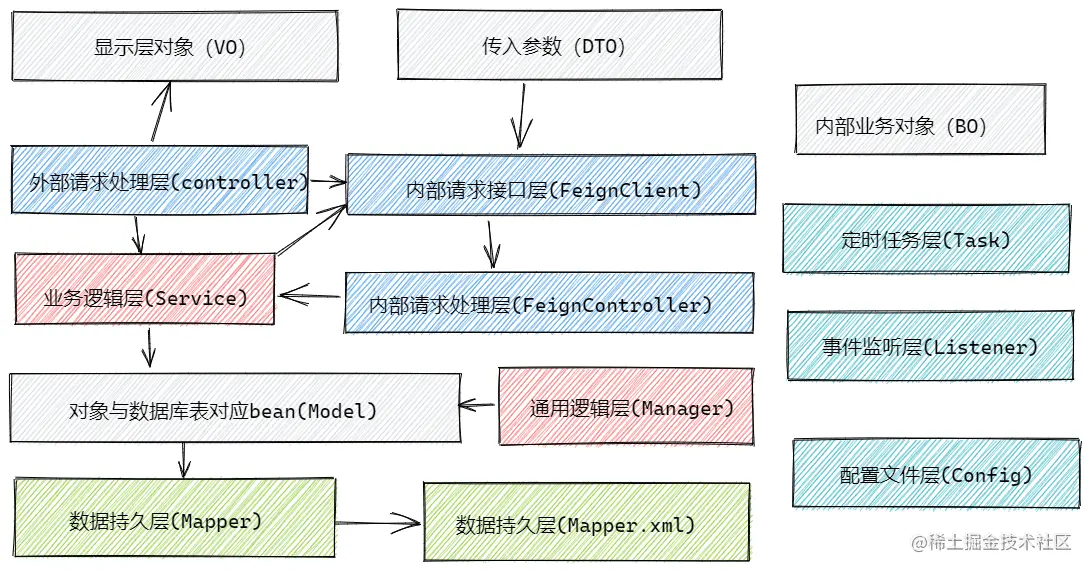 Controller:主要是对内部访问控制进行转发,各类基本参数校验,或者不复用的业务简单处理等。为了简单起见,一些与事务无关的代码也在这里编写。