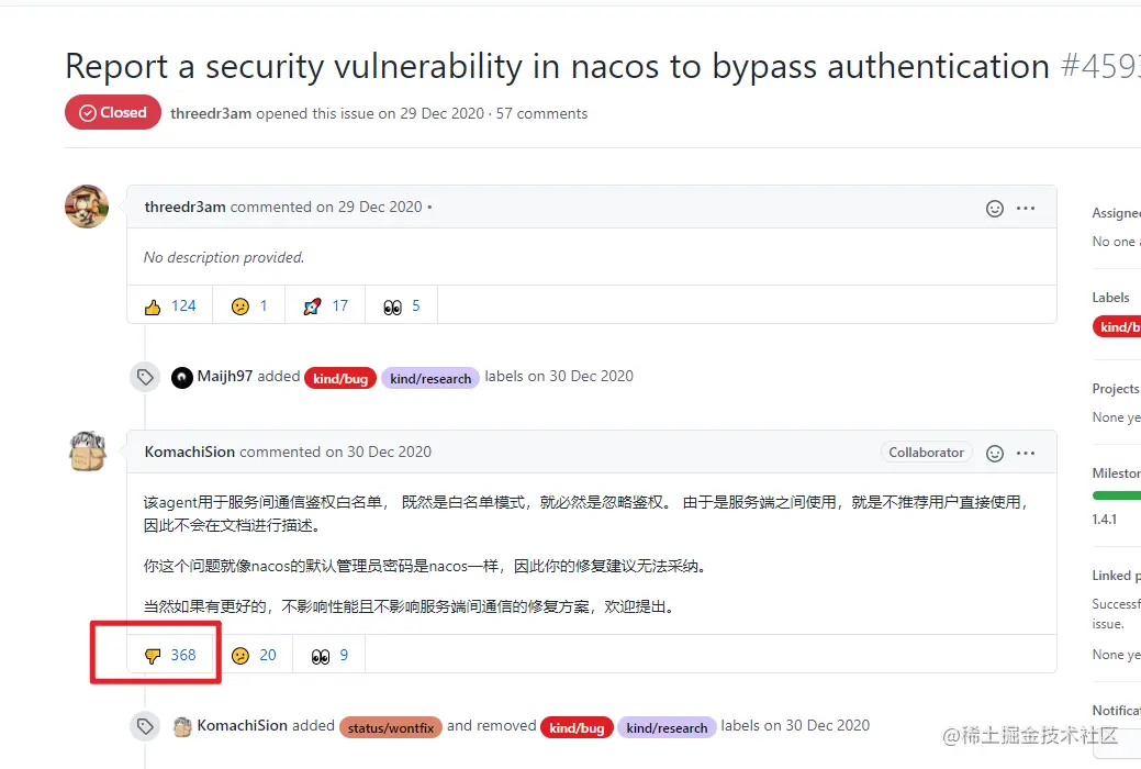 几乎同时,nacos被爆安全问题,管理员不理不睬的态度,让人气愤