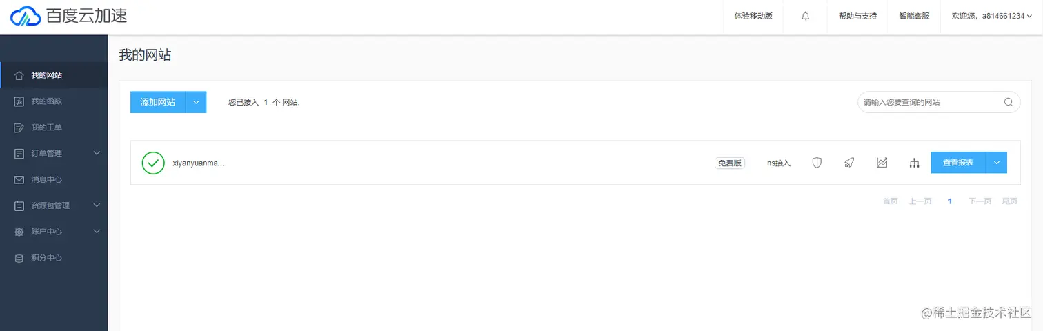 6)最后选择免费版套餐,等待片刻后,就完成了,下面就可以体验一下加速效果了~!当然如果有能力的话,可以尝试一下使用CDN加速,效果估计更佳