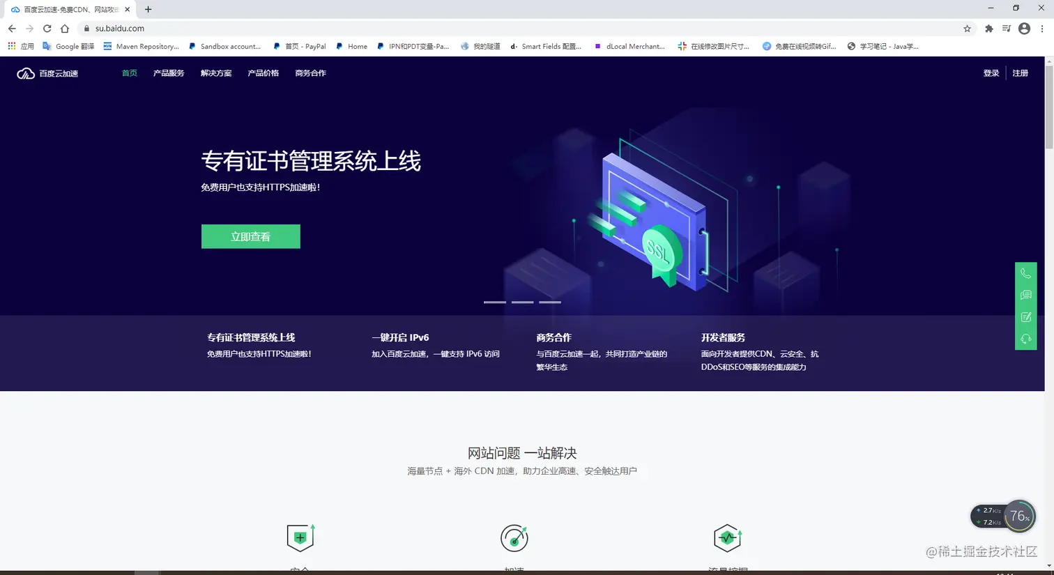 1)下面进入正题,打开百度云加速的官网 su.baidu.com/