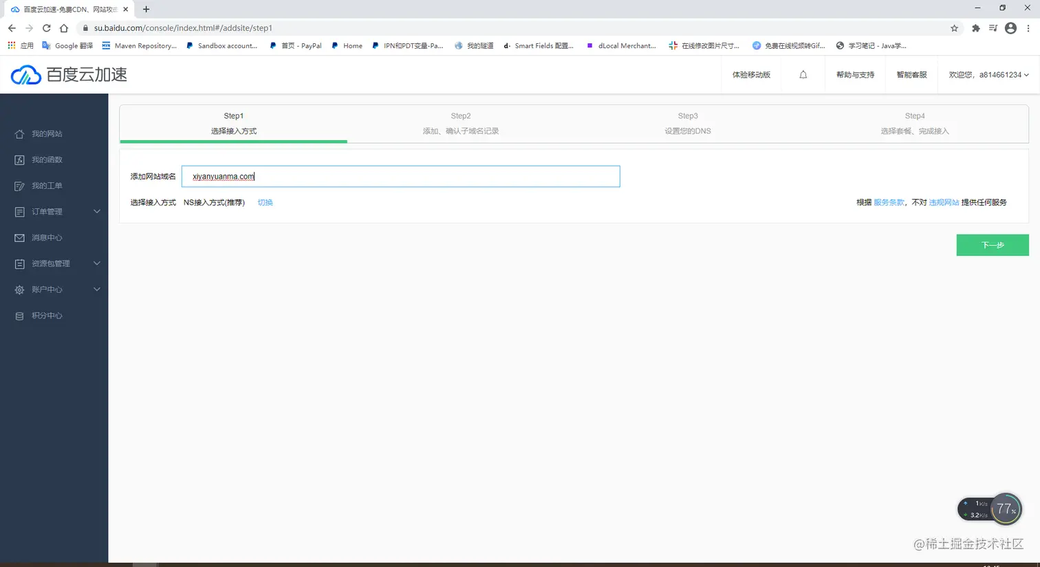 今天偶然的情况,看到了百度云加速能进行网站访问速度提升,因为现在我是用学生价买的阿里云服务器,1核2G 1M带宽的,所以第一次加载资源的时候,是非常慢的,所以就打算尝试一下。