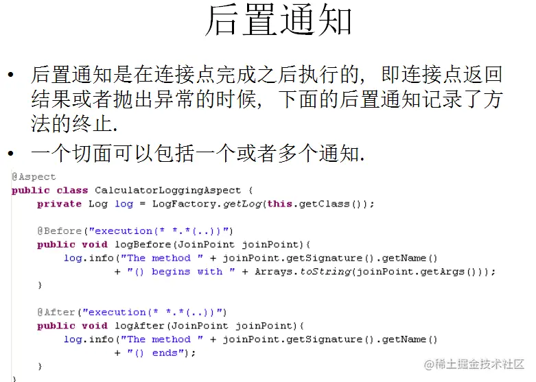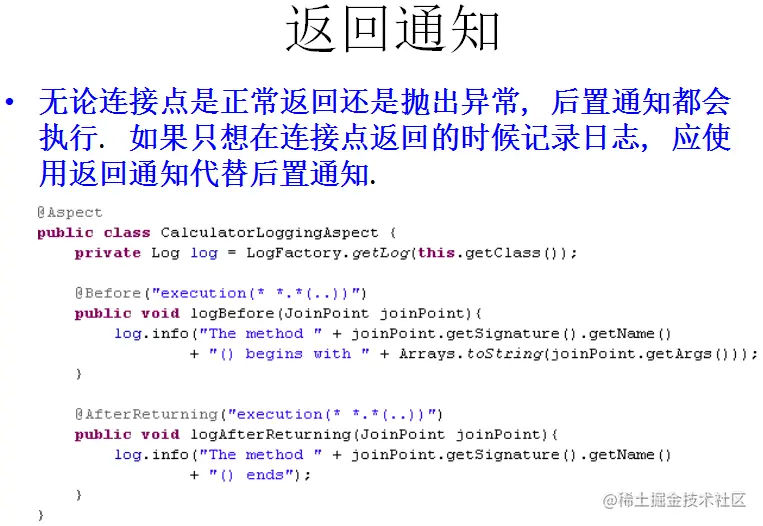 * @Description: 在方法正常结束后执行代码,放回通知是可以访问到方法的返回值