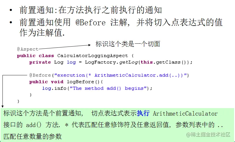 //声明该方法是一个前置通知:在目标方法开始之前执行 哪些类,哪些方法