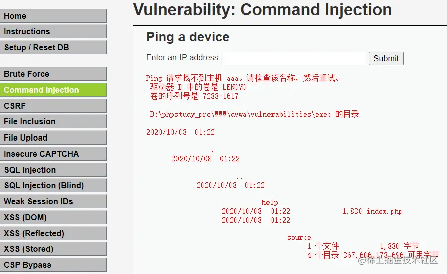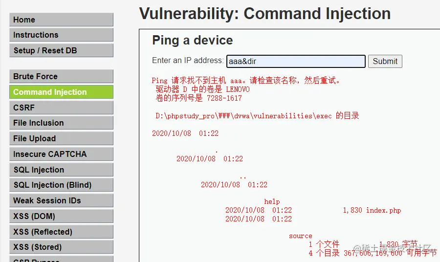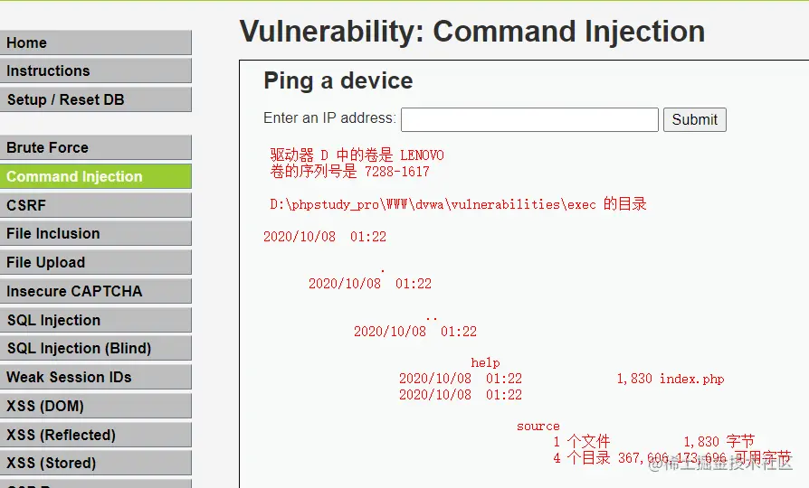 2、DVWA command injector medium