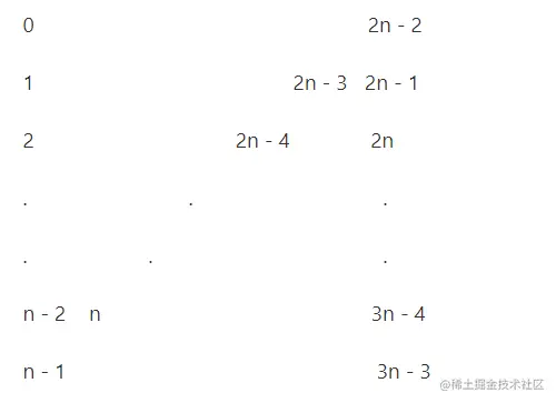 len = 2 * numRows - 2位置 - 除去首尾两行,每个 Z 字每行有两个字母,索引号关系为