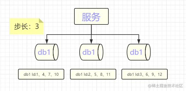 为了提供数据库层的高可用,需要对数据库使用多主模式进行部署,对于每个数据库来说要保证生成的号段不重复,这就需要利用最开始的思路,再在刚刚的id_generator表中增加起始值和步长,比如如果现在是两台数据库实例,那么
