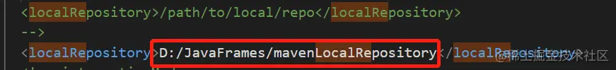 还是打开 apache-maven-xxx/conf/ 目录下的 settings.xml 文件,然后将如下路径修改为自己要设置的本地仓库,比如我的本地仓库路径如下图: