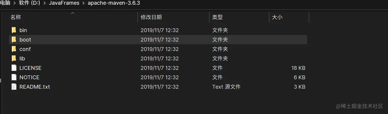 安装好 Maven 之后,其目录和内容如下,各目录内容如下: