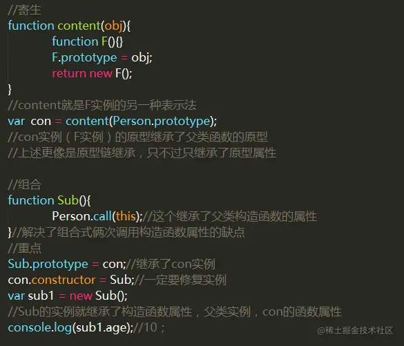 重点:让新实例的原型等于父类的实例。