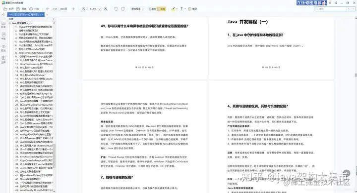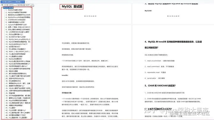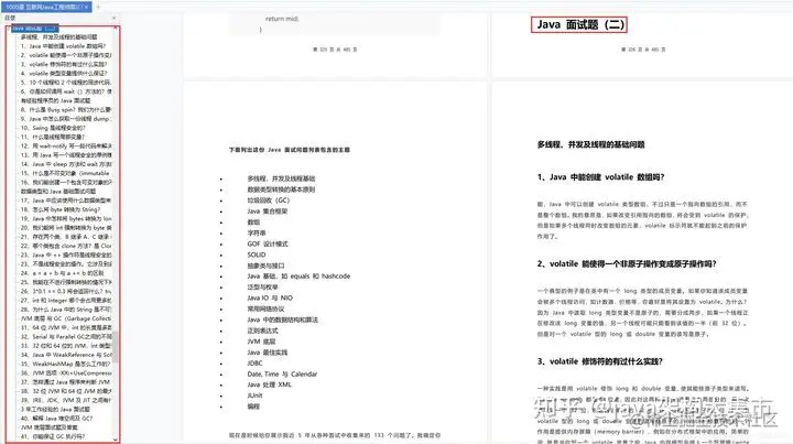 下面列出这份 Java 面试问题列表包含的主题总计 133 个问题,由于篇幅问题就不把问题一一列出来了,这里就展示一些截图。