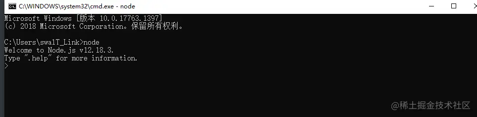 然后输入 黑窗口输入 node 出现以下界面成功