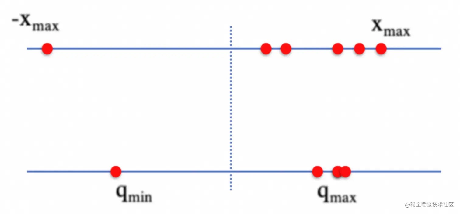 - 仿射方式:将模型中浮点数的最大最小值映射到整数的最大最小值。