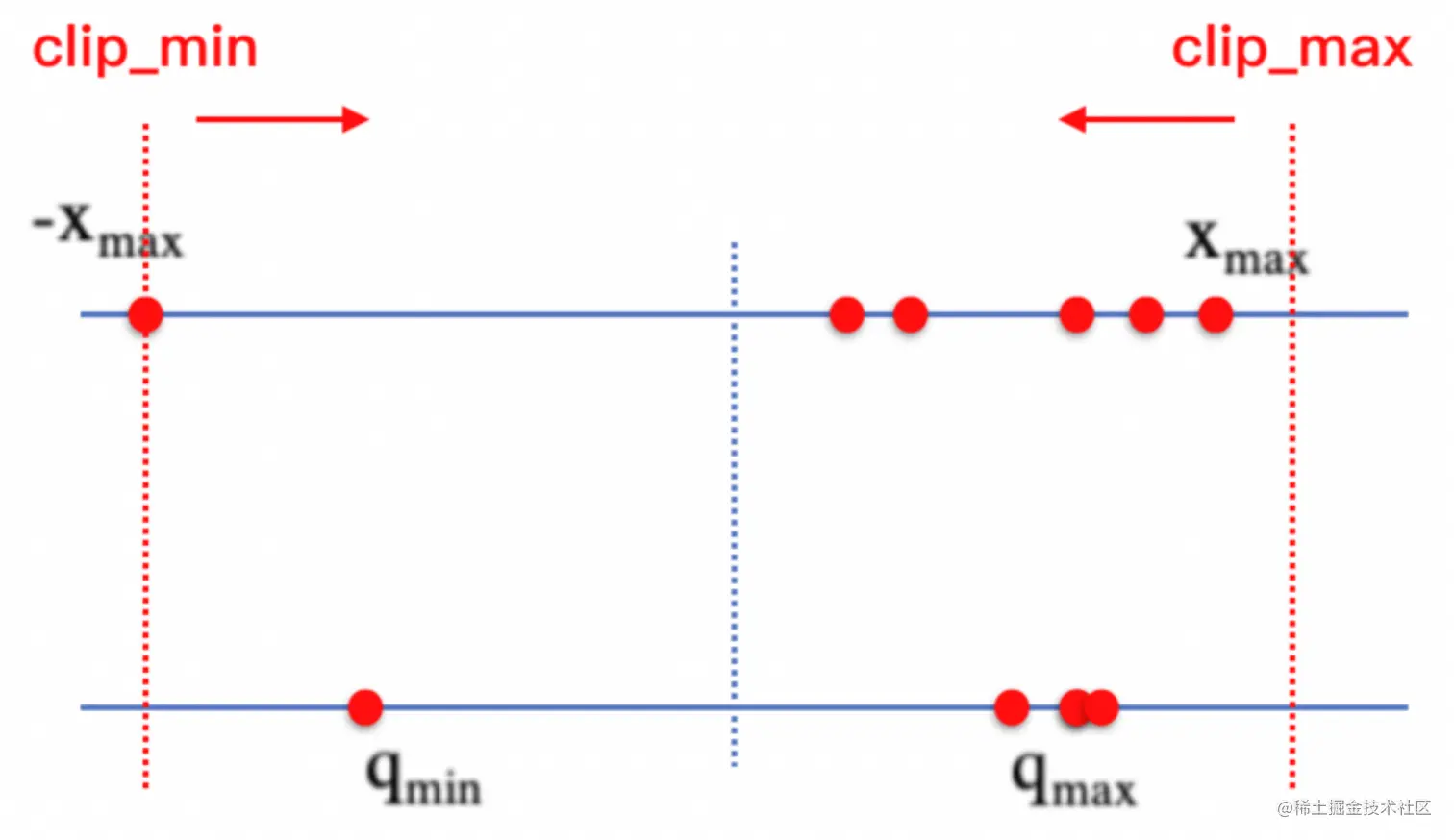 通过对激活数值做裁剪,从而减少激活分布中的离群点,使量化模型能够得到一个更合理的量化scale,降低量化损失。
