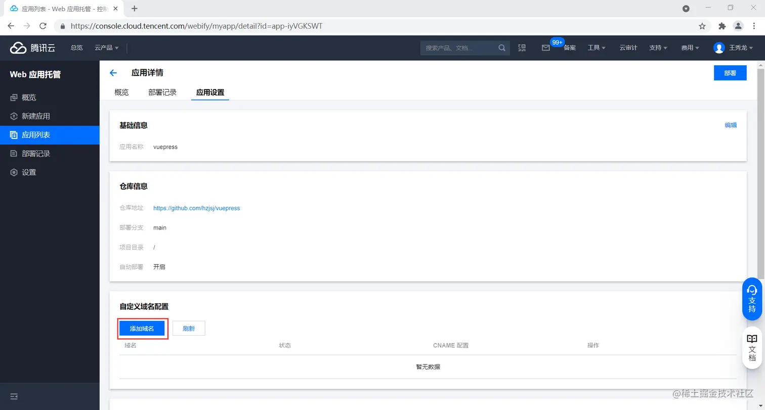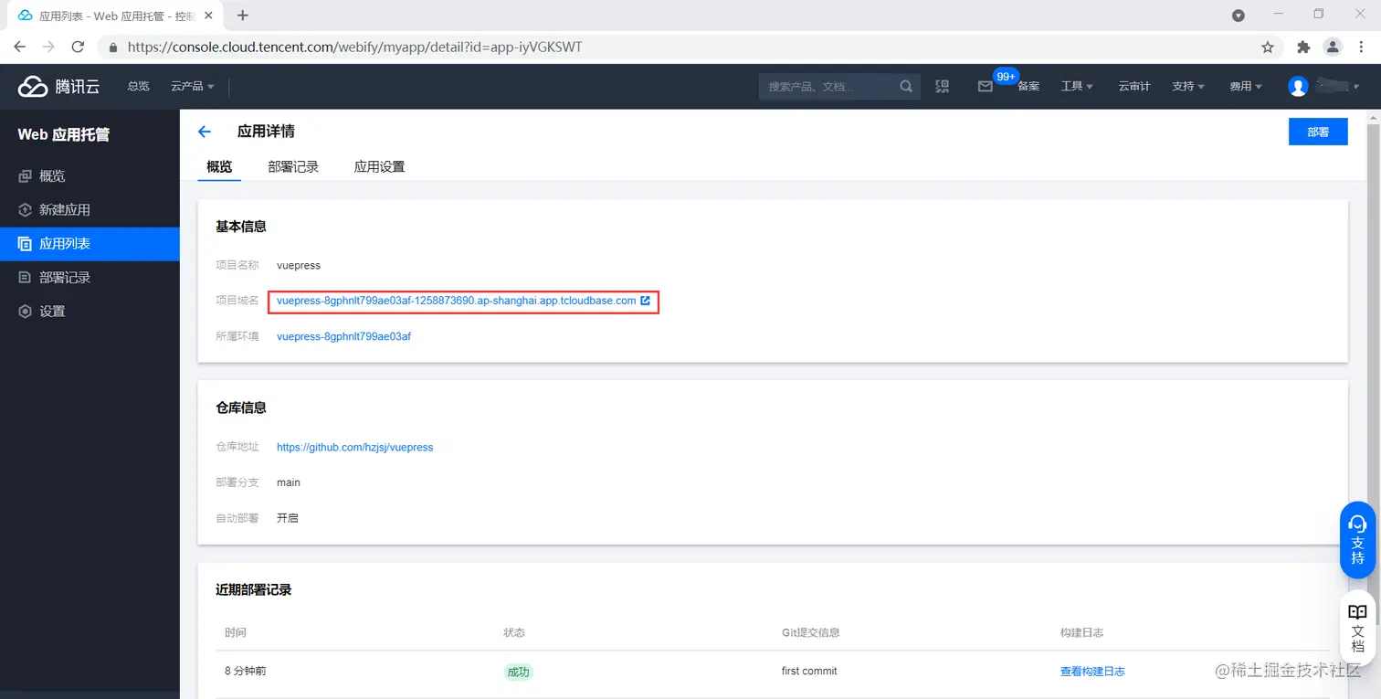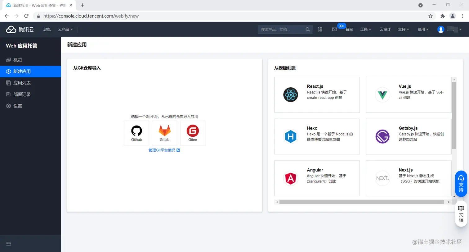 Web 应用托管控制台:console.cloud.tencent.com/webify/inde…