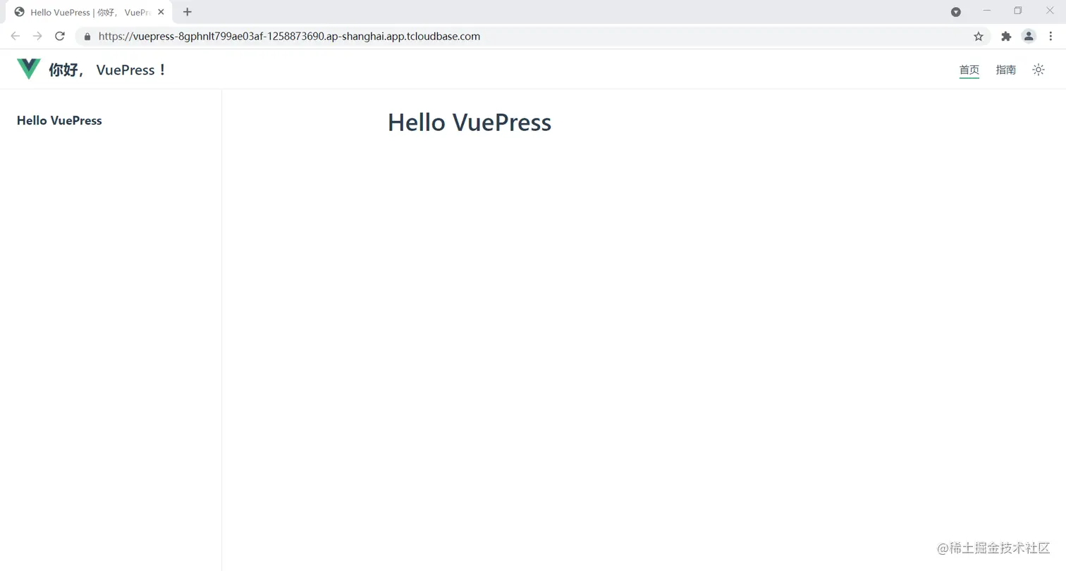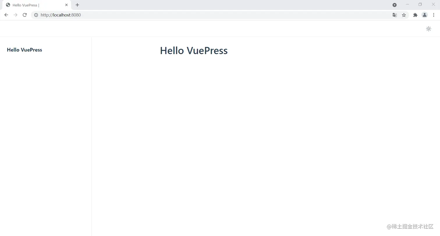 VuePress 会在 http://localhost:8080 启动一个热重载的开发服务器。当你修改你的 Markdown 文件时,浏览器中的内容也会自动更新。访问后可以看到下面这个页面