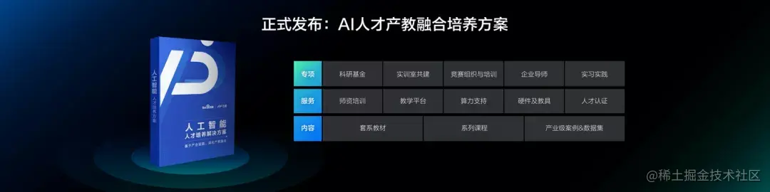 百度持续加码AI复合型人才培养,将依托我国首个自主研发、功能丰富、开源开放的产业级深度学习平台——飞桨(PaddlePaddle),根据《AI人才产教融合培养方案》,从内容、专项合作、服务层面展开产学研实践。内容层面,百度将联合高校出版套系教材、系列课程,同时开放百度及生态合作伙伴输出的产业级案例与数据集,夯实内容基础;服务层面,百度将提供多项服务,包含师资培训、AI Studio教学平台、算力支持等六大项体系化支持;此外,百度还与高校达成多类专项合作,以满足高校AI教学与实践中的多元化需求。