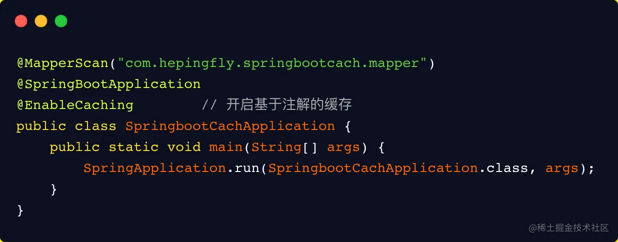 ① 第一步:开启基于注解的缓存,使用 @EnableCaching 标注在 springboot 主启动类上