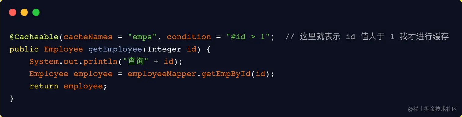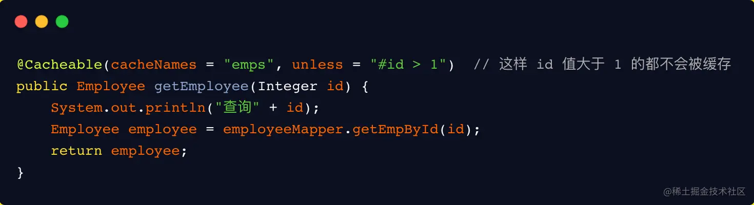 符合条件的情况下才缓存。方法返回的数据要不要缓存,可以做一个动态判断。