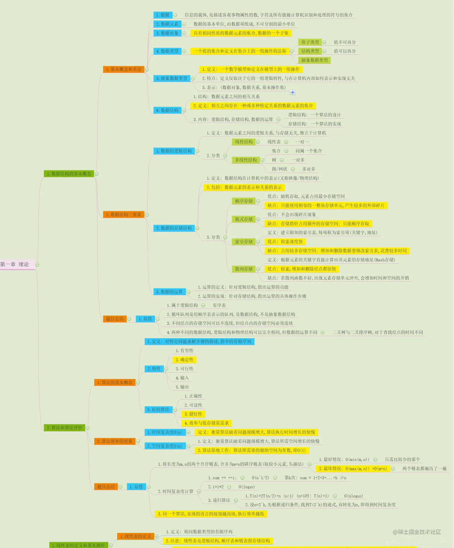 本文的思维导图根据王道的数据结构书本整理而来并标记出重点内容,包括了知识点和部分课后习题