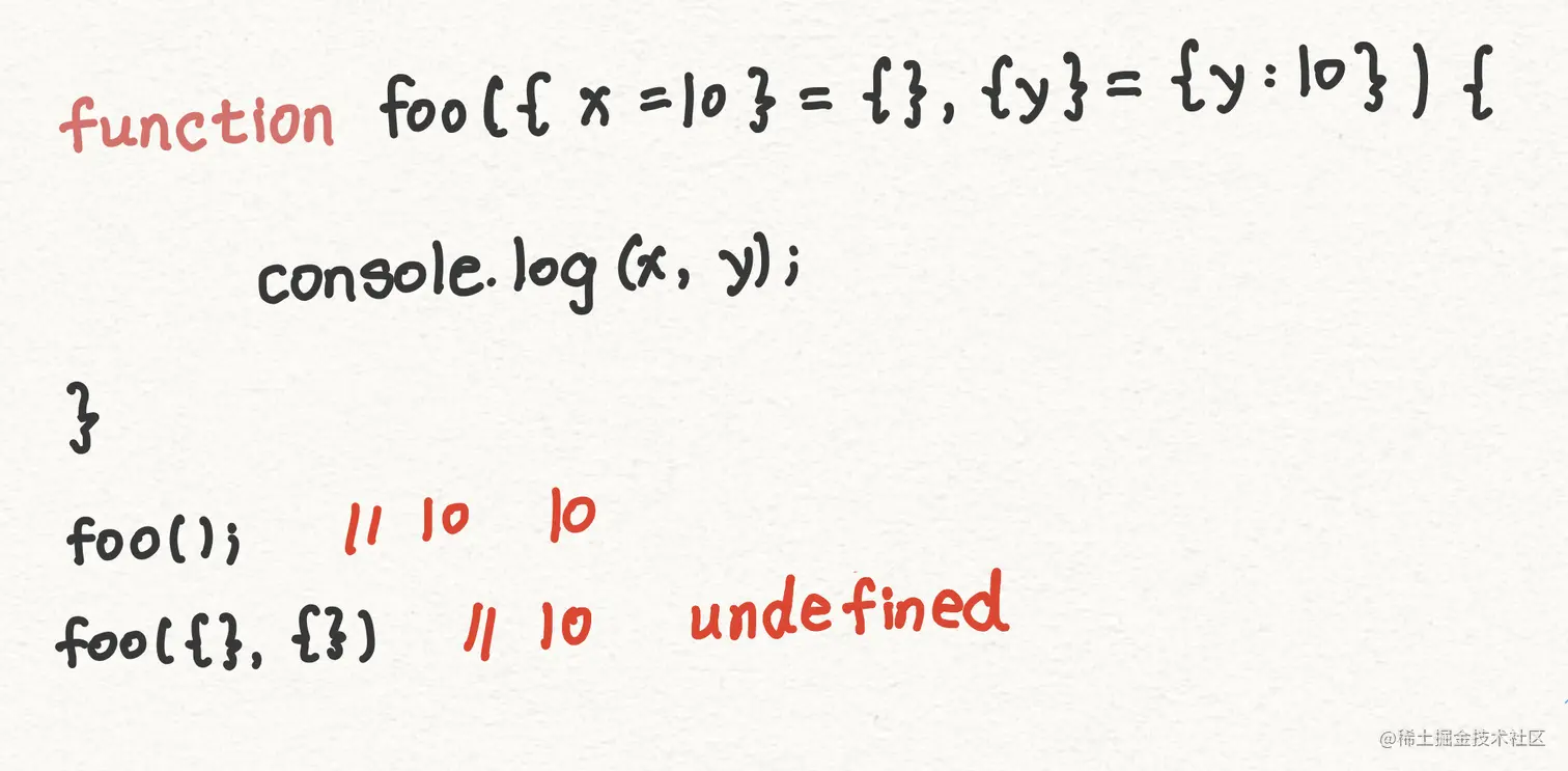 因此,通过这个🌰,我们一定要意识到,搞清楚解构的默认值和参数的默认值是非常重要的!