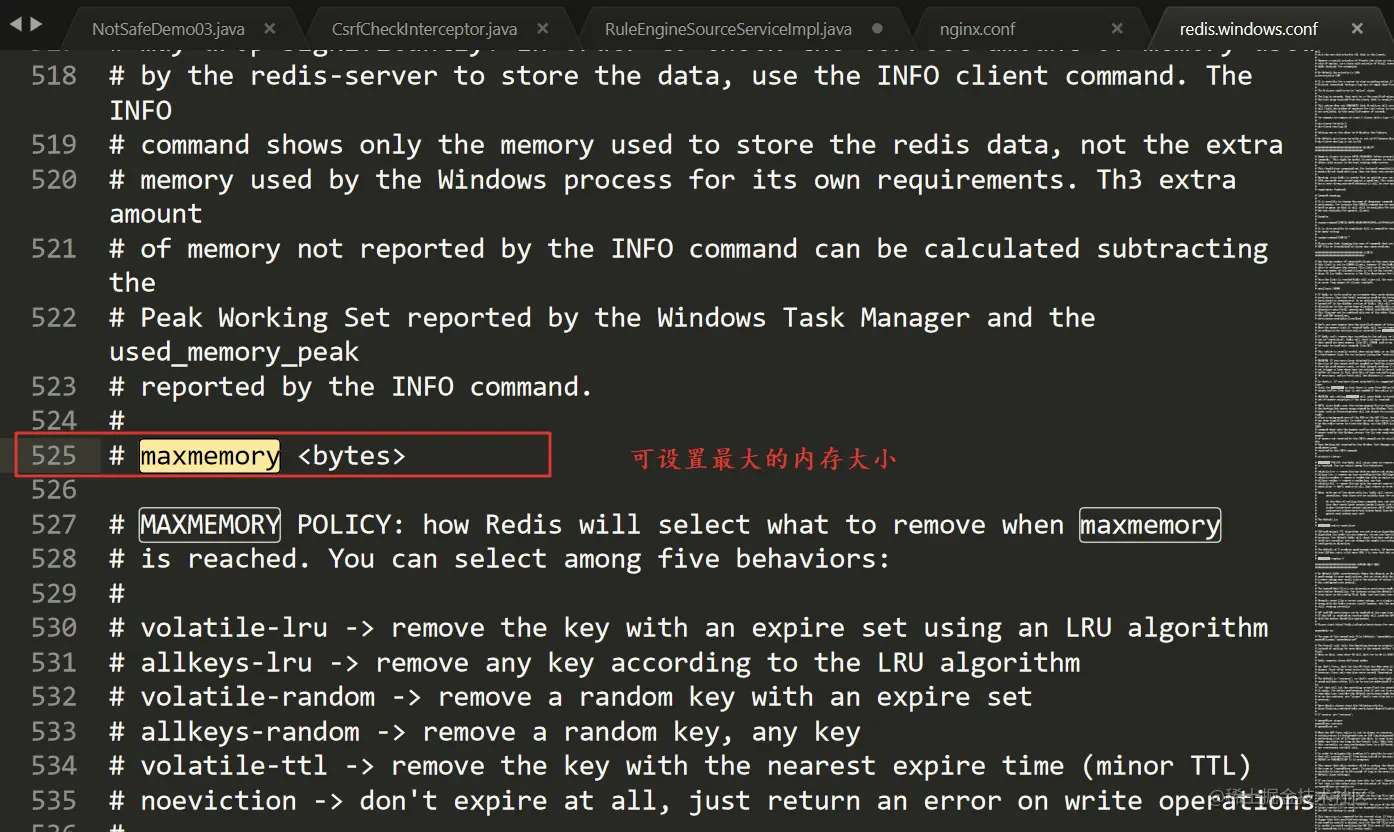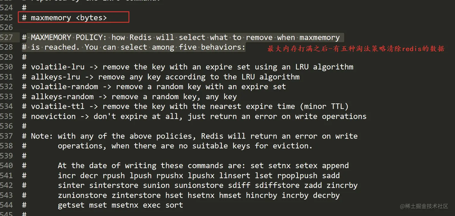 默认的Redis conf文件中,对于淘汰数据;