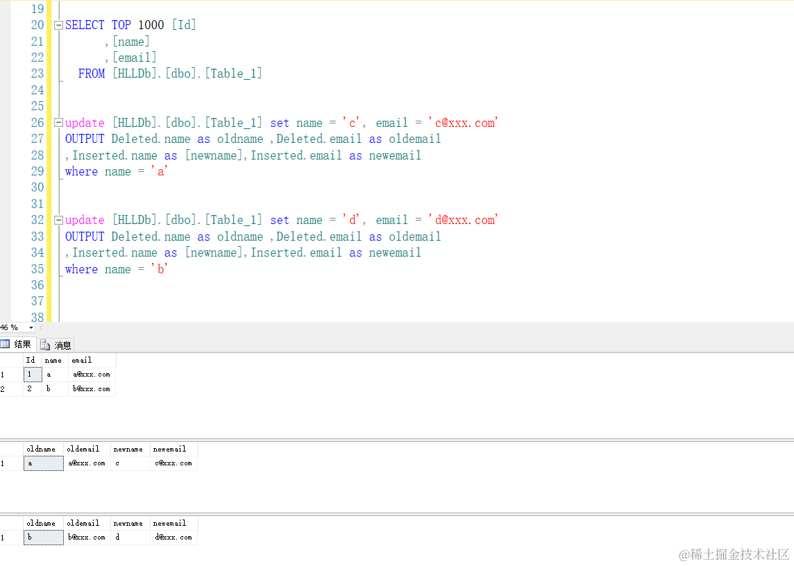 update [HLLDb].[dbo].[Table_1] set name = 'c', email = 'c@xxx.com'
