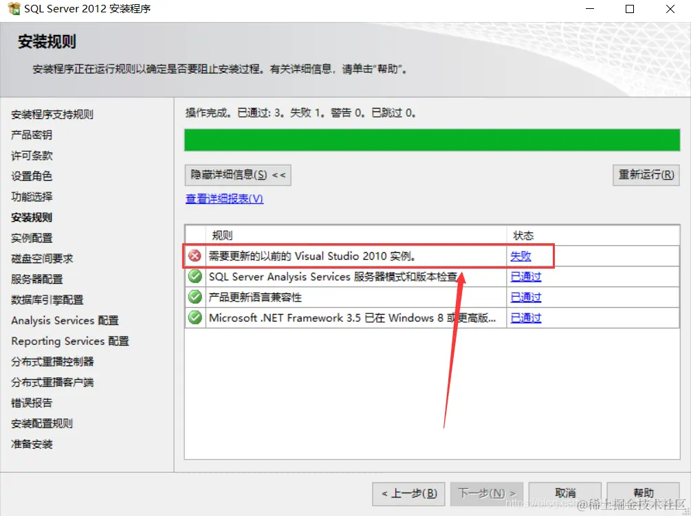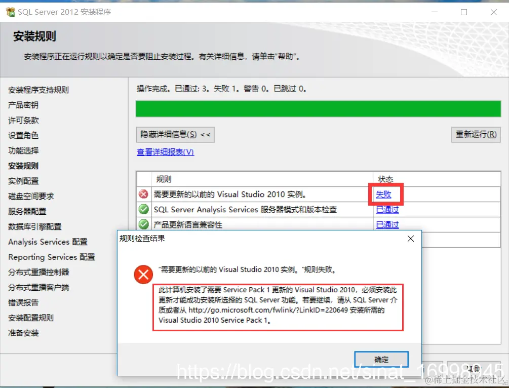 安装SQL Server 2012,需要更新的以前Visual Studio 2010 实例,如下图: