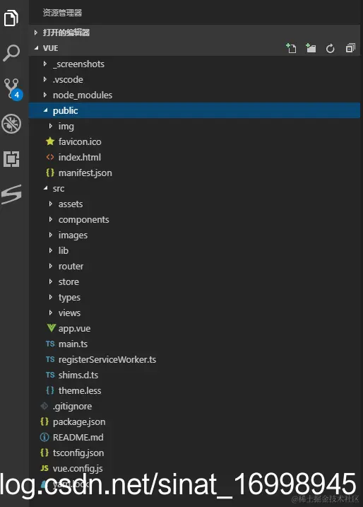 (4).gitattributes和.gitignore 两个git文件,这两个为隐藏文件,由于本地计算机文件夹属性设置了隐藏文件可见,所以显示出来了
