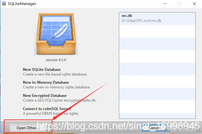 4.SQLiteManager找到项目目录.svn\wc.db