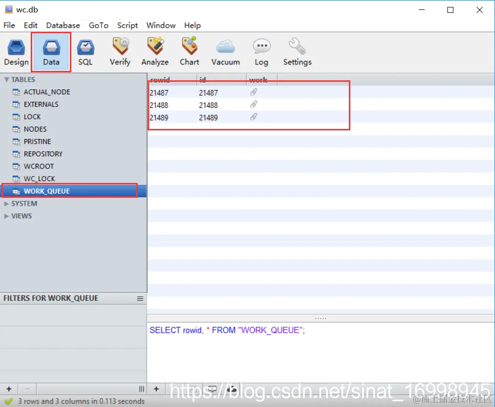 6.使用sql删除中“work_qunue”的数据