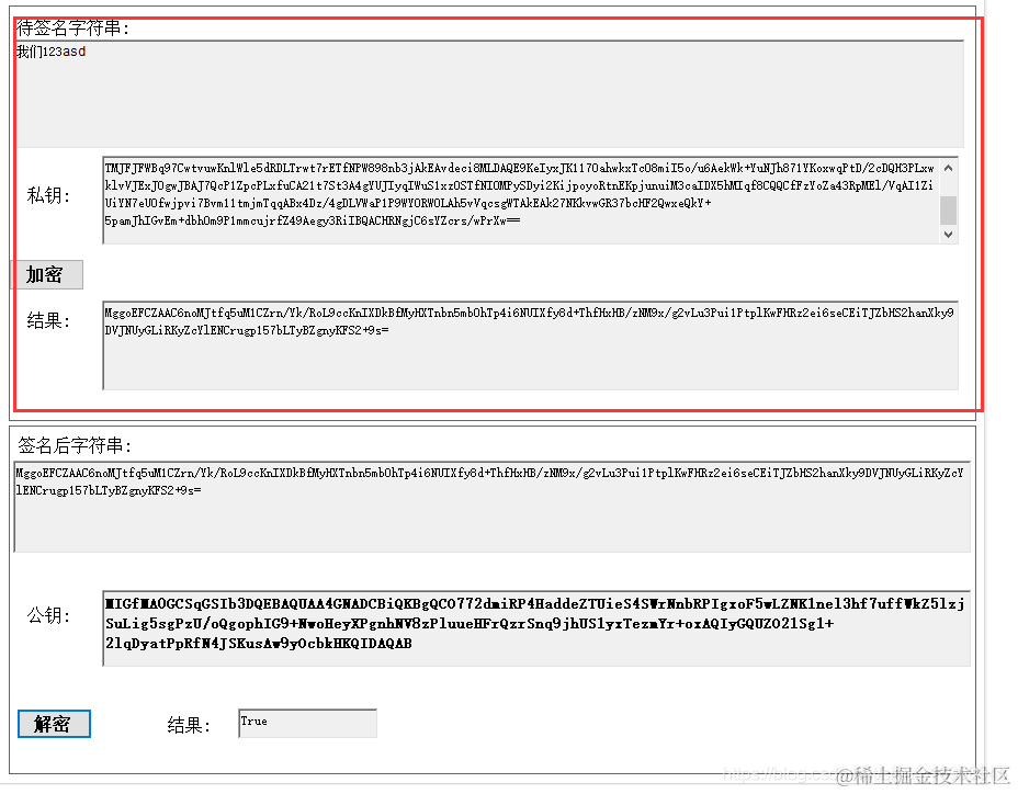 说明:1.使用私钥签名, 2.签名后每次结果是不变的