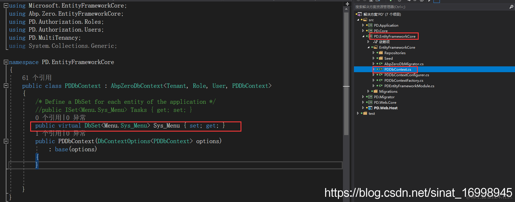 public class PDDbContext : AbpZeroDbContext<Tenant, Role, User, PDDbContext>