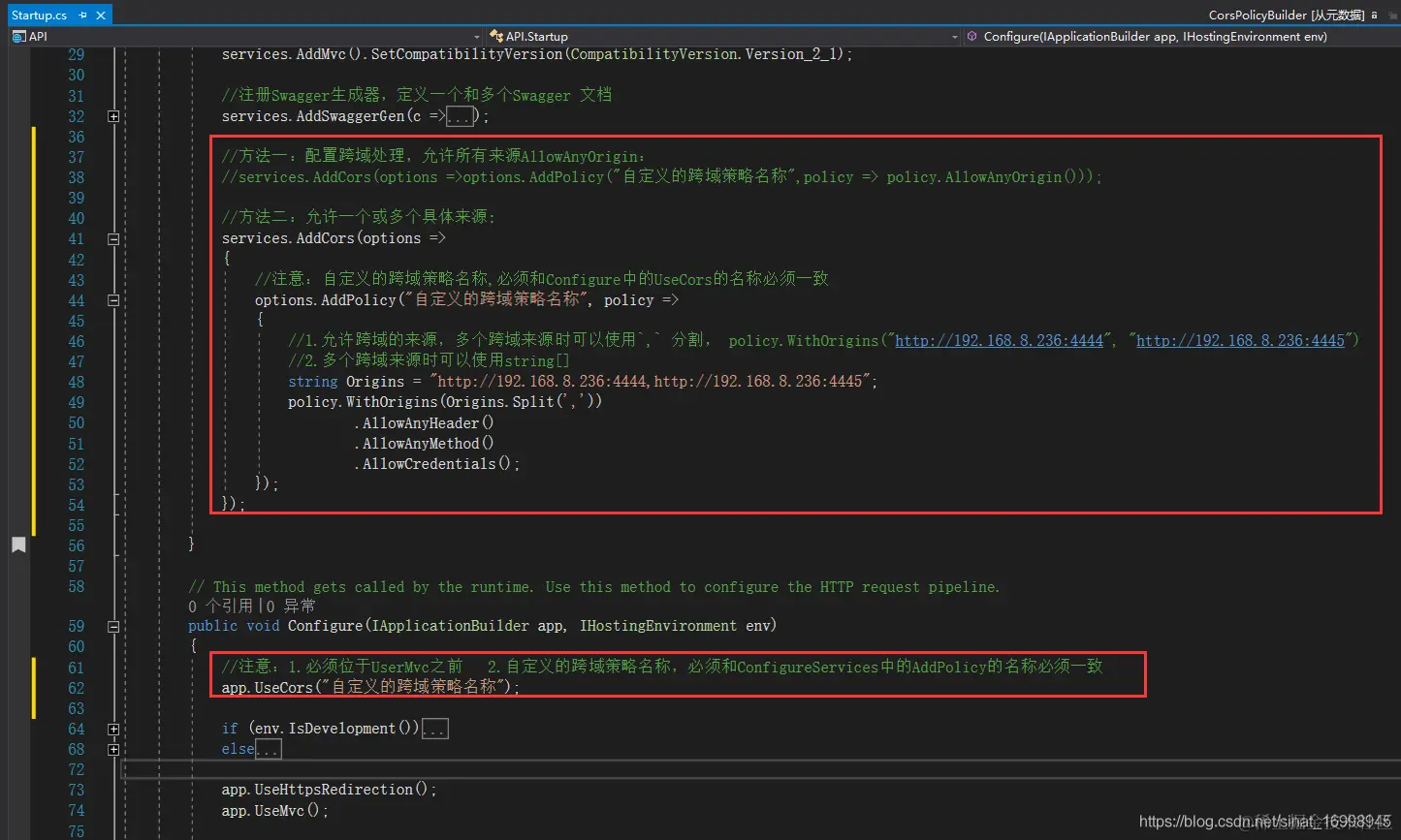 //注意:自定义的跨域策略名称,必须和Configure中的UseCors的名称必须一致