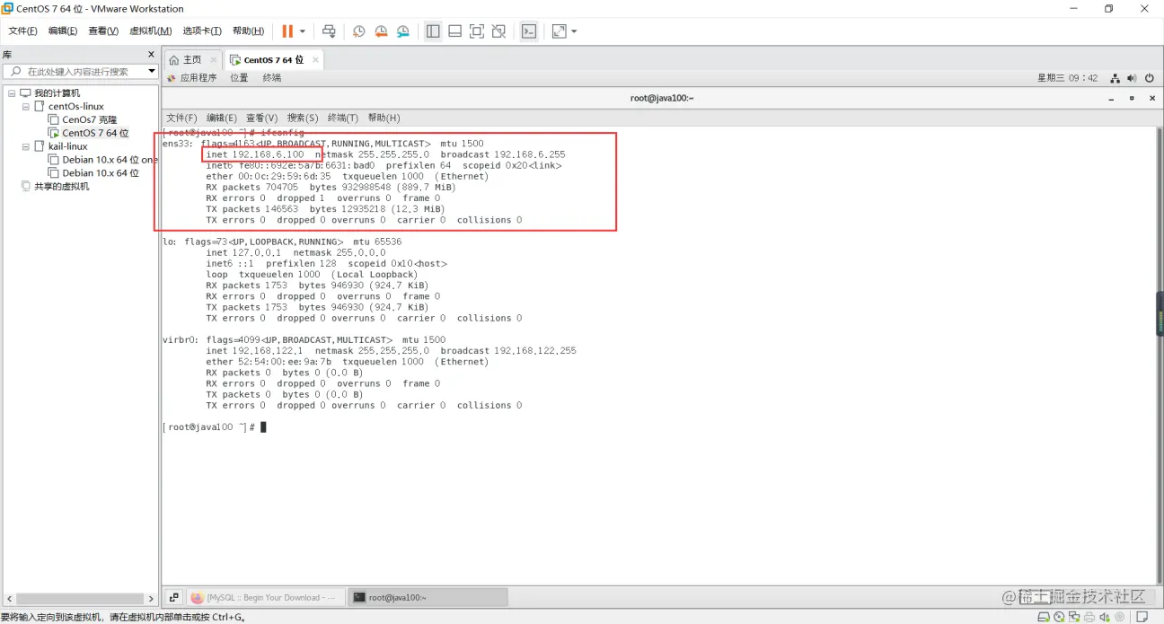 进入linux虚拟机查看是否存在ip地址 如果当前ip不存在执行以下命令