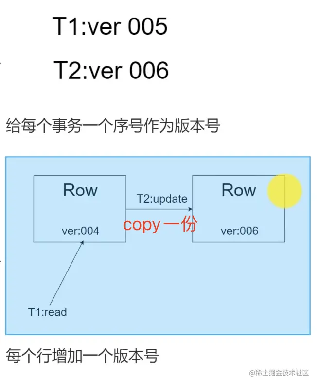 - MVVC:multiple version concurrency control(多版本并发控制)